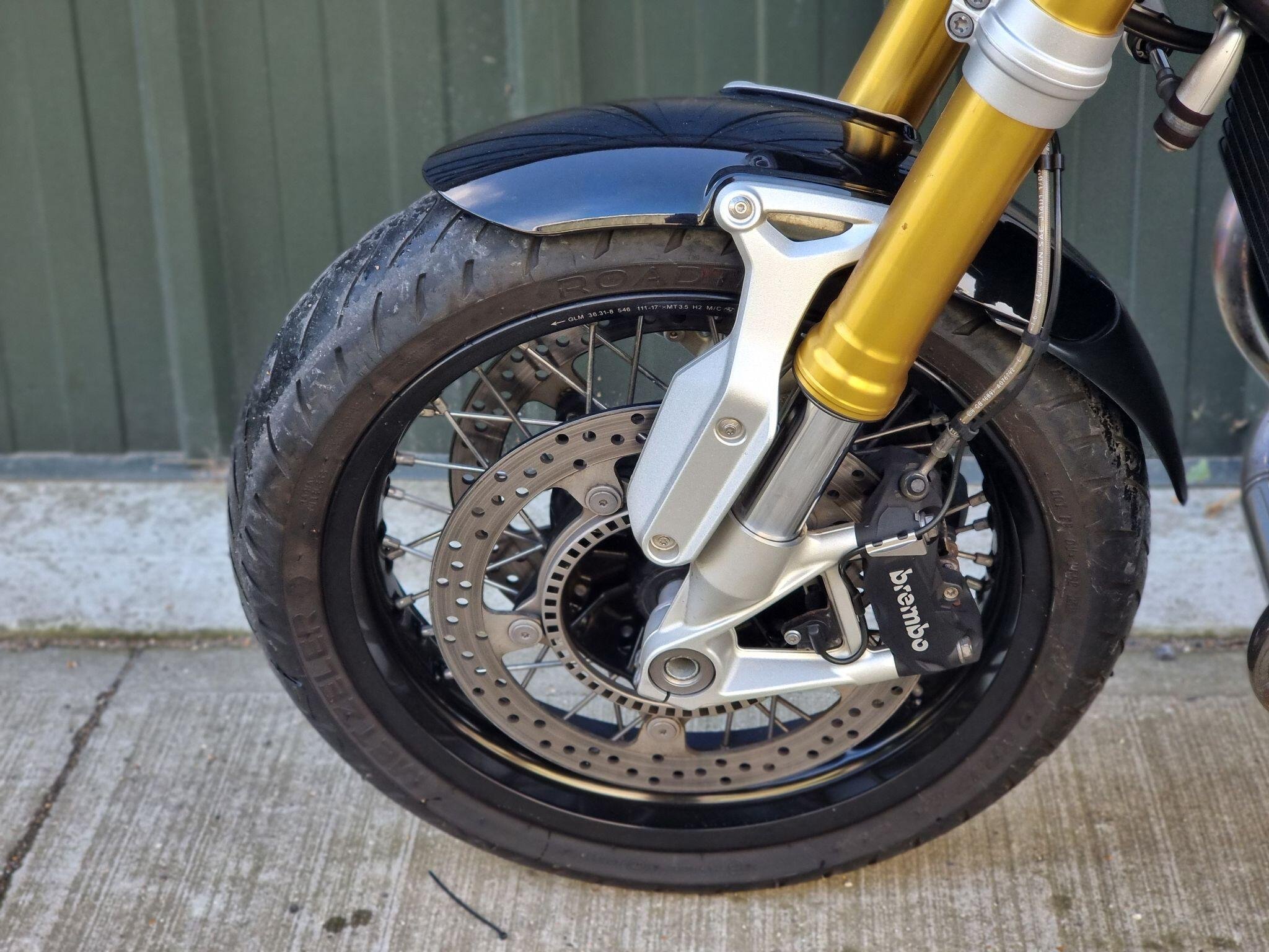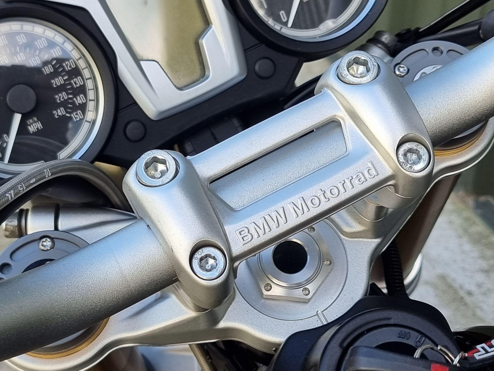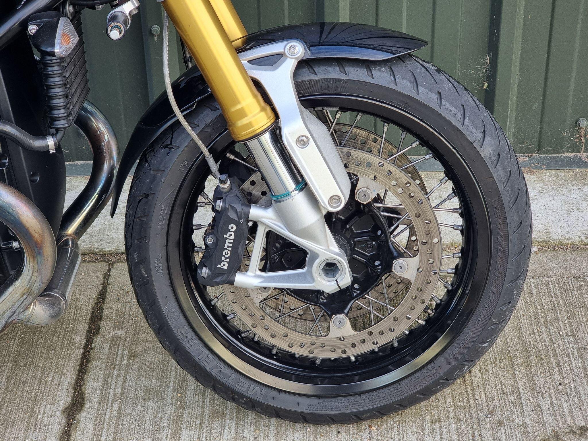 This BMW R9T 1200cc is in the classic Black and silver. This example has been treated to upgraded Suspension at £1500, which absolutely transforms the handling. This has bar end mirrors and the rear hump to complete the cool look. The LED headlight is a fantastic edition. We will be fitting a new front tyre . If you have ever considered an R9T, but perhaps the ride put you off, think again as the Nitron shock makes so much difference. Make an appointment to come and view. We can discuss your current part exchange we can help with delivery