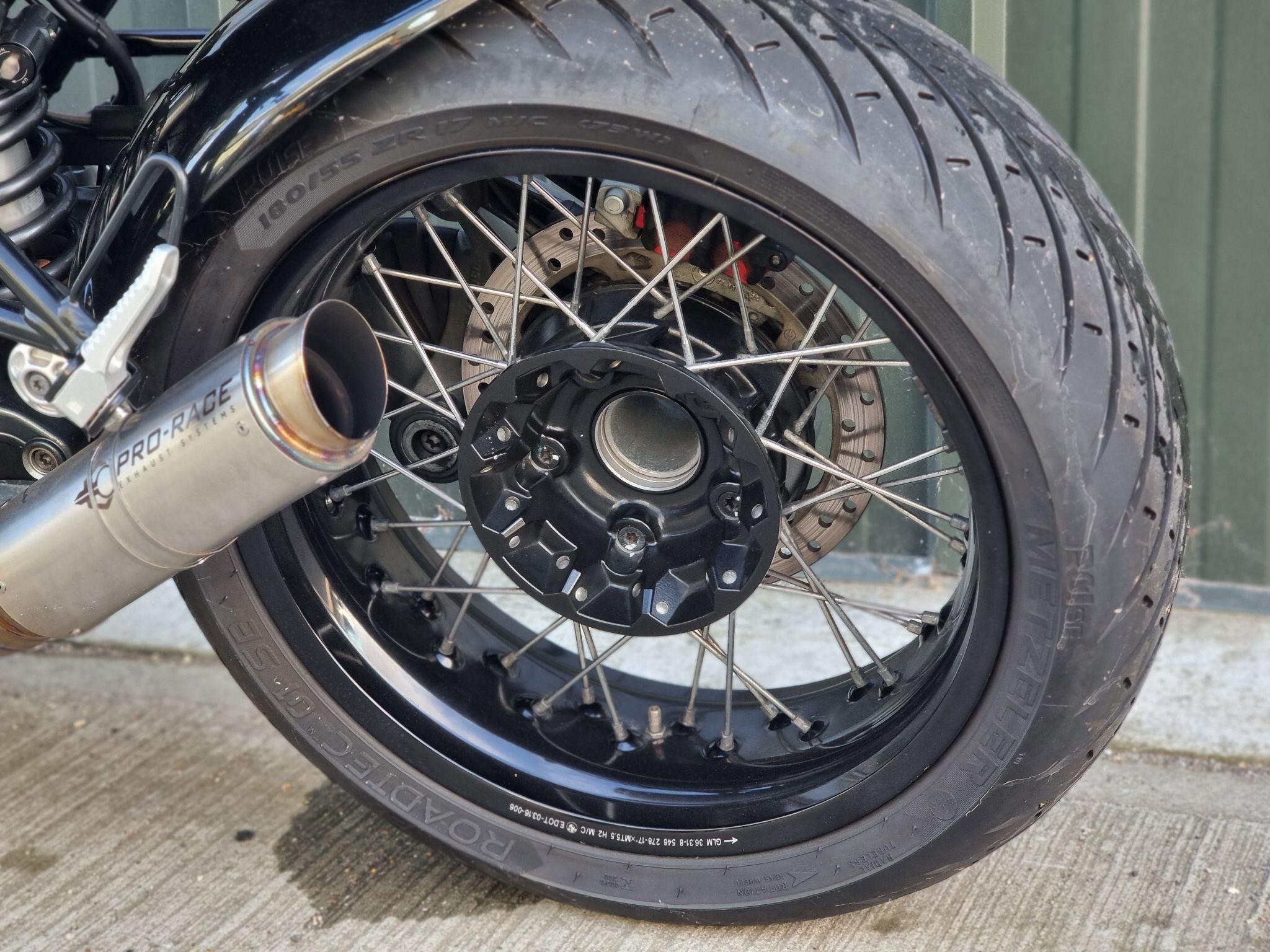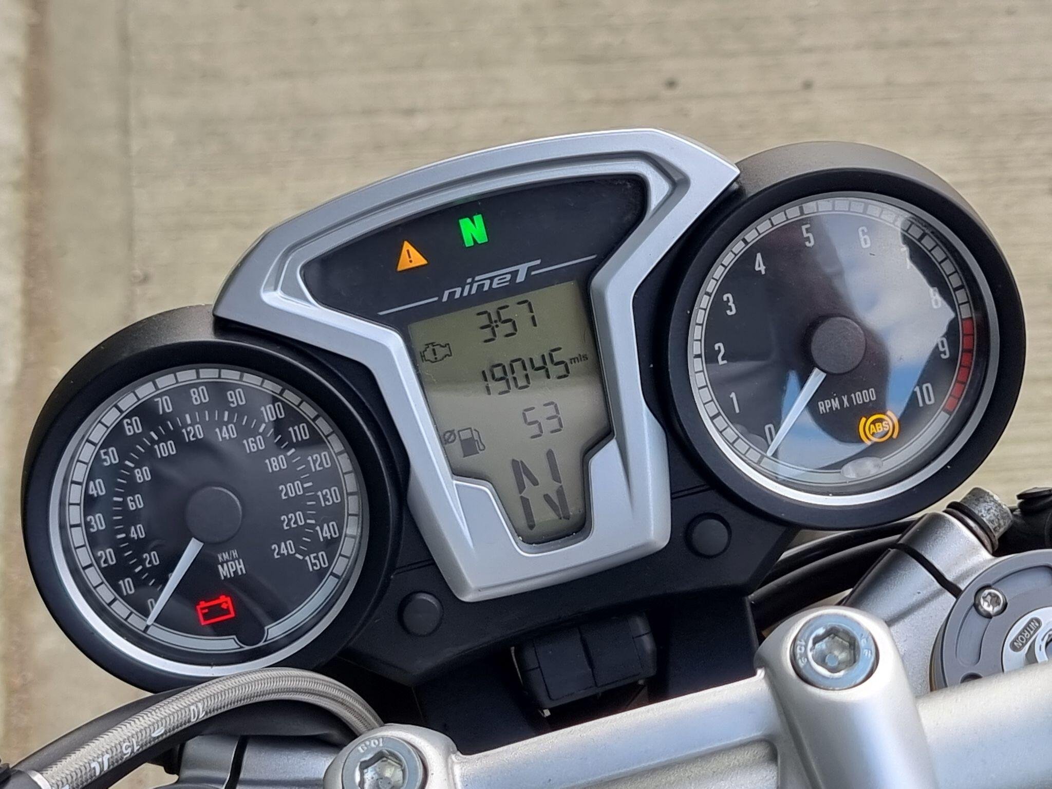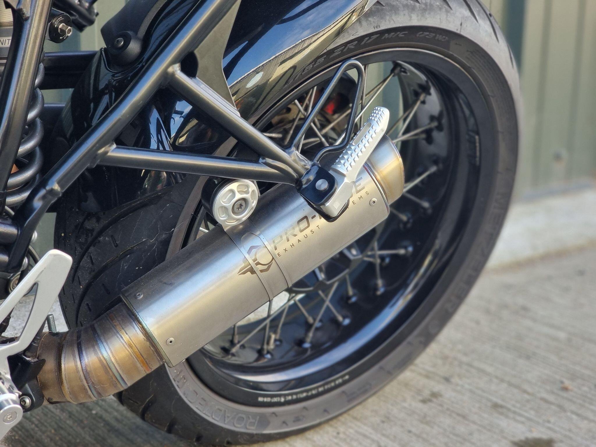 This BMW R9T 1200cc is in the classic Black and silver. This example has been treated to upgraded Suspension at £1500, which absolutely transforms the handling. This has bar end mirrors and the rear hump to complete the cool look. The LED headlight is a fantastic edition. We will be fitting a new front tyre . If you have ever considered an R9T, but perhaps the ride put you off, think again as the Nitron shock makes so much difference. Make an appointment to come and view. We can discuss your current part exchange we can help with delivery