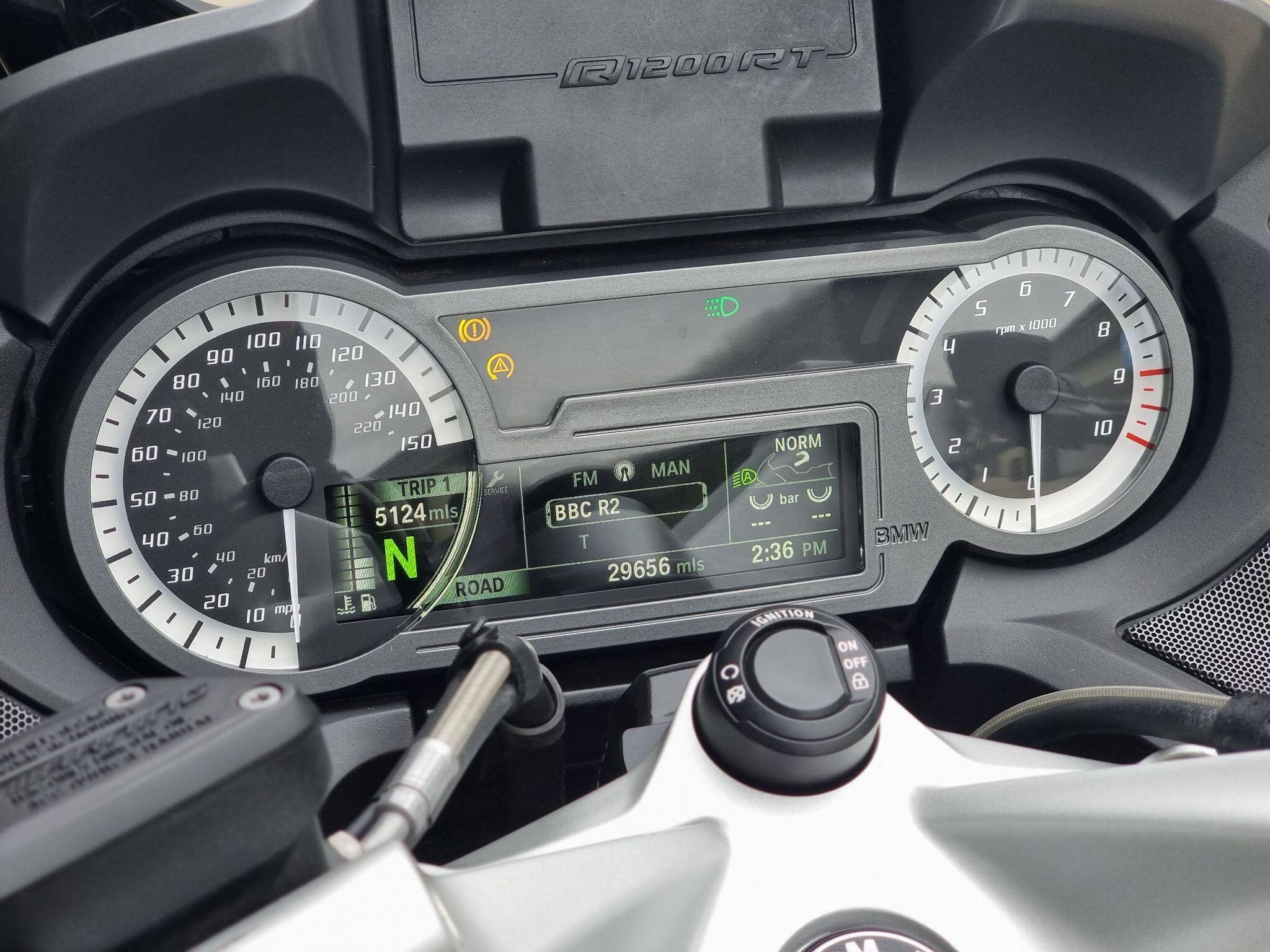 This BMW R1200RT LE in Ebony metallic looks so classy. This example has a colour coded topcase with an led brake light. This version has the radio, and auxiliary socket so you can be wired for sound.