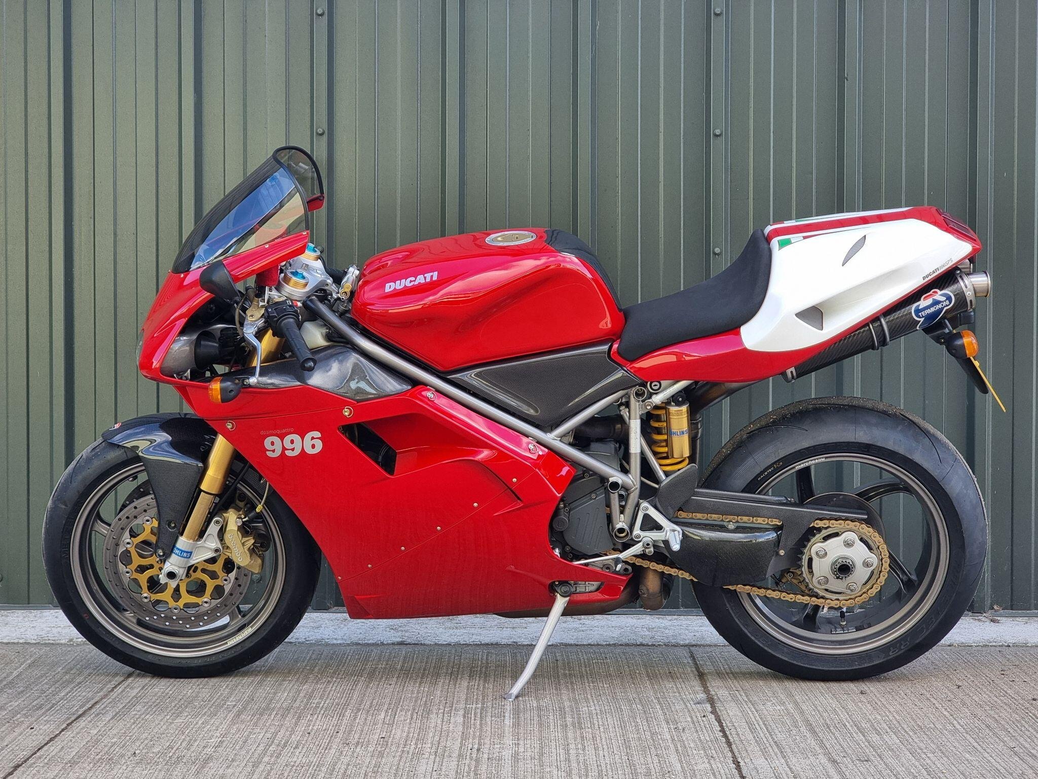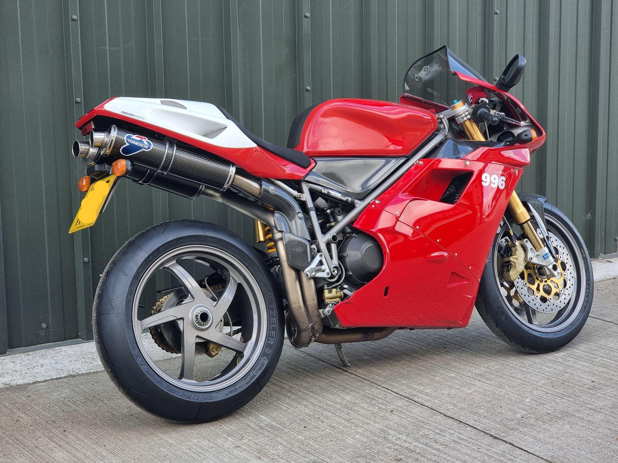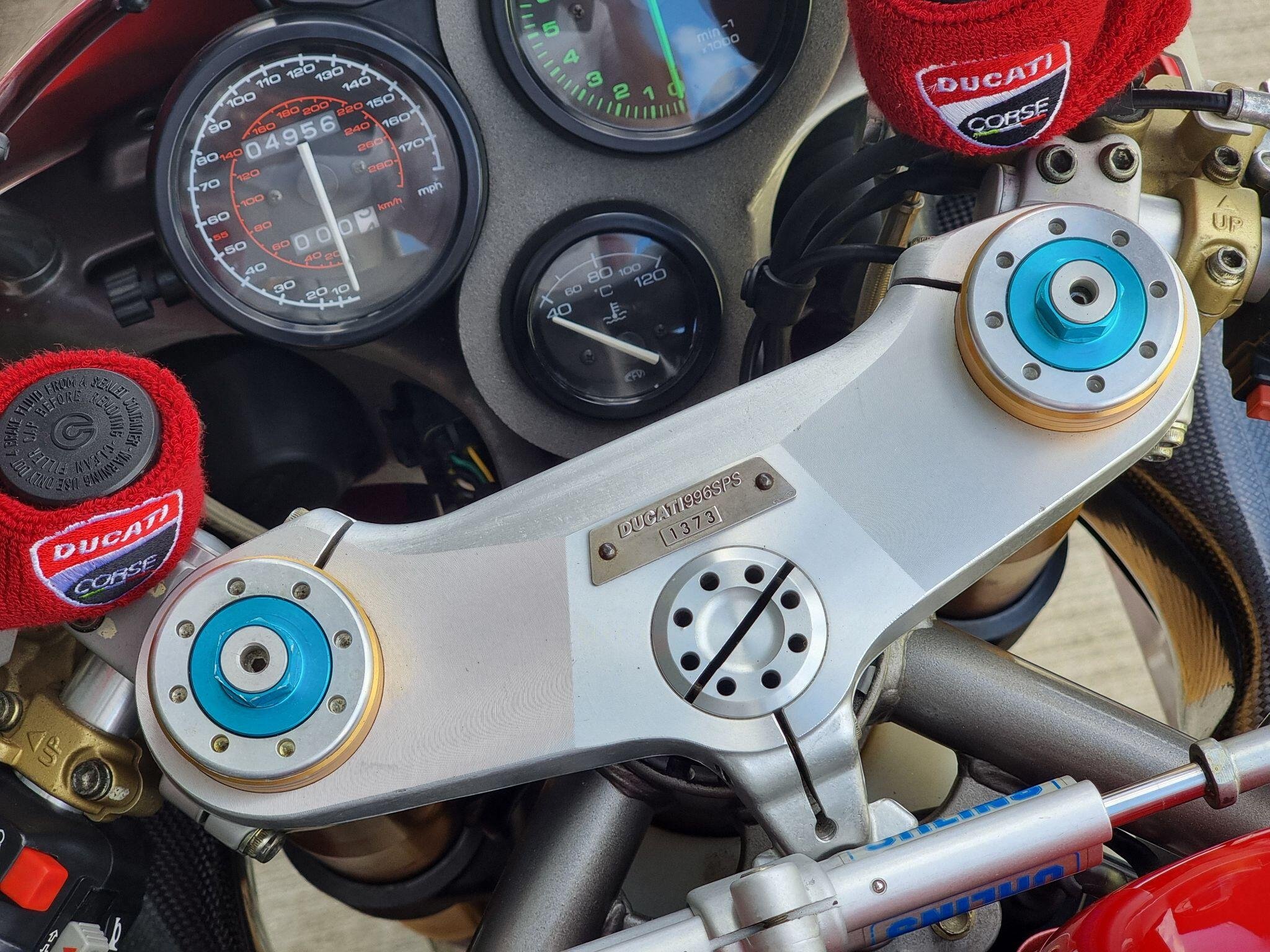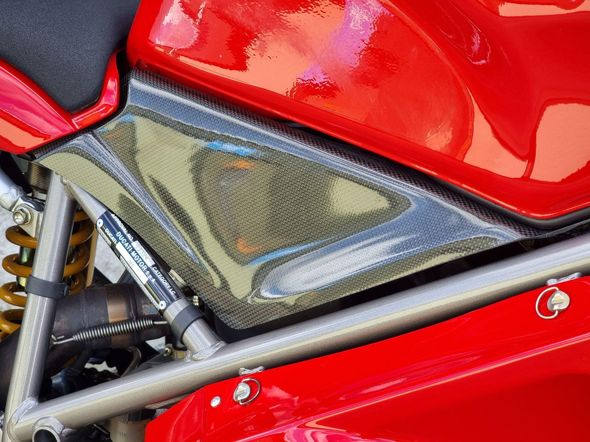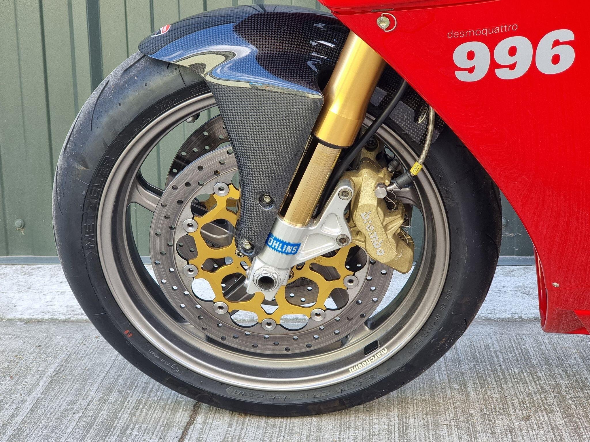 We have this rather special Ducati 996SPS to present. This example is in superb condition and has covered just 4952 miles from new. Originally supplied new into Singapore hence the original MPH clocks. RHD lights and Speedometer. It was part of a very fine collection until imported into UK in 2007. This bike is number 1373 of 1780. This bike is fitted with the all important Carbon Termignoni exhausts, Ducati five spoke Magnesium alloys, rear sets and various carbon upgrades including air pipes, rear swing arm, chain guard and exhaust guards.