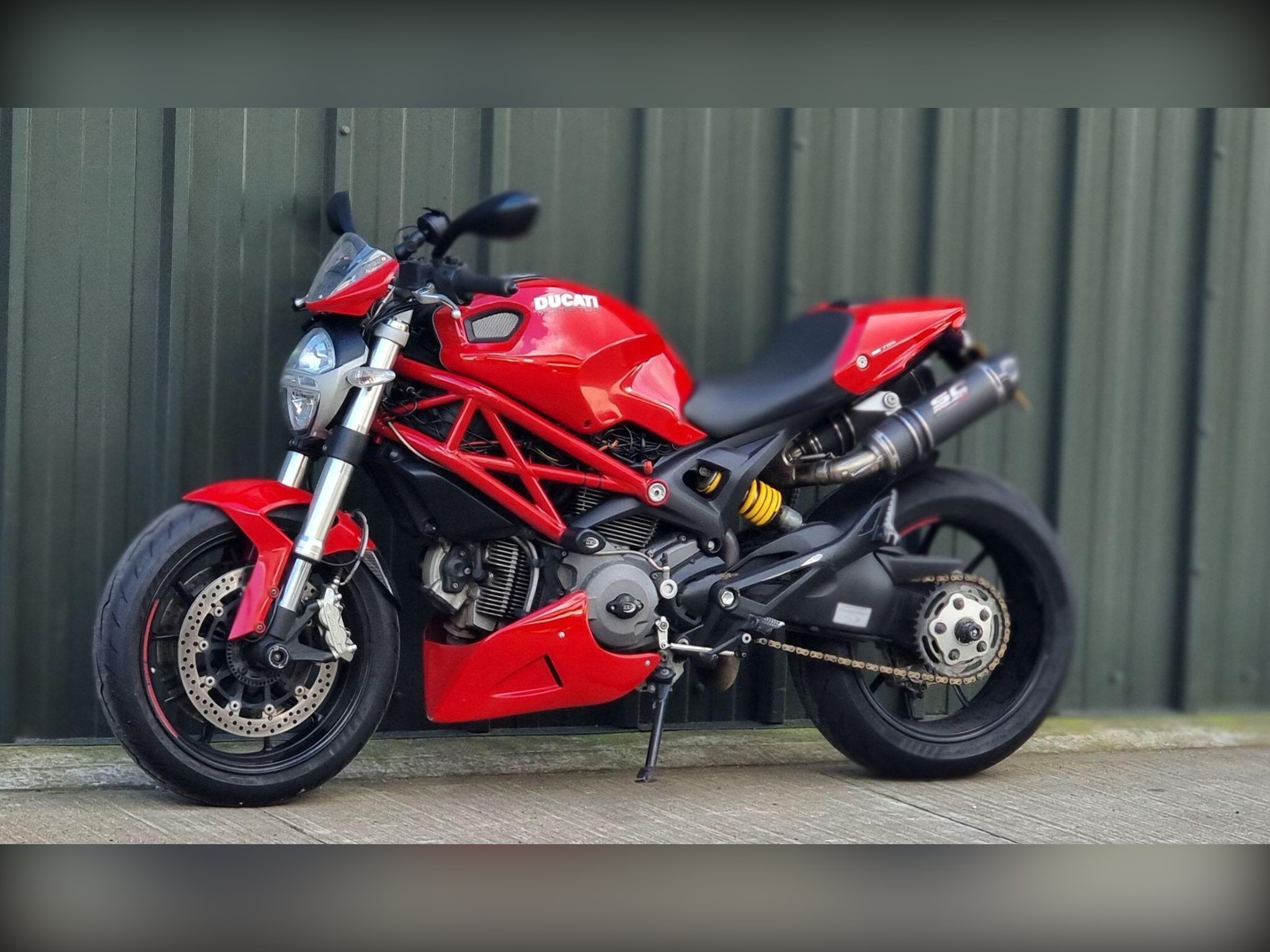 This Ducati Monster 796 in the classic Red is tough looking. The SC Project end cans sound great, a real deep tone. This bike has been looked after, we will be refreshing the belts when sold. Come and view this bike, make an appointment! We can help with delivery, we can discuss your part exchange. Comes with an excellent reg V2 SPV.