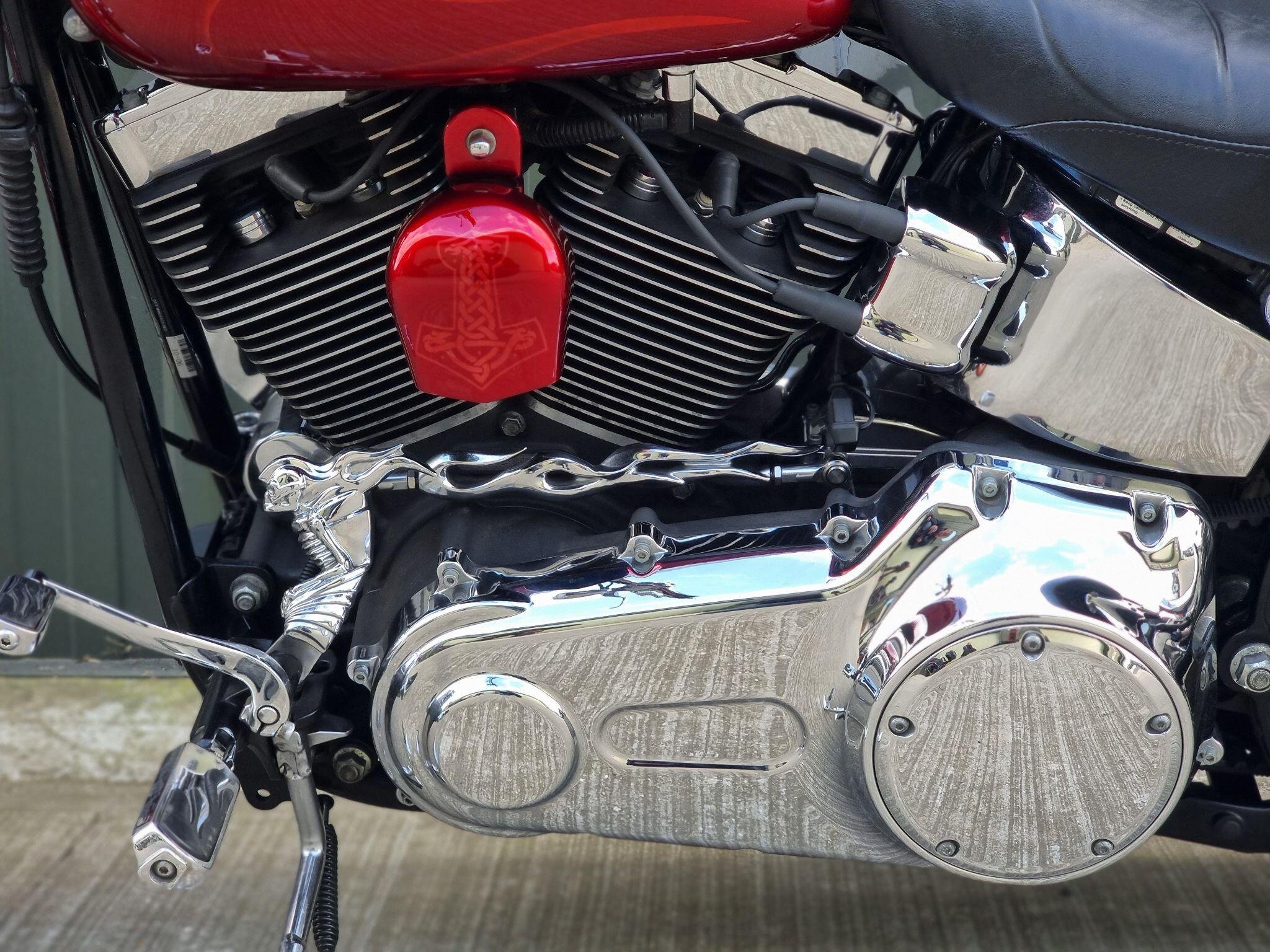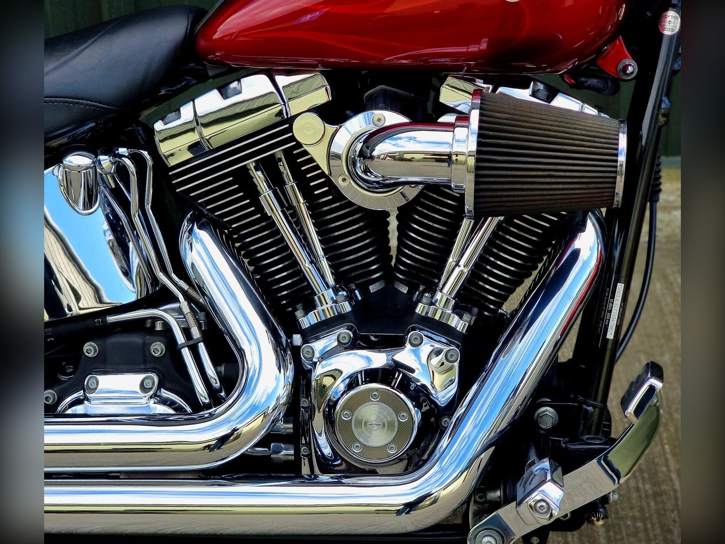 This Harley Davidson Softail Custom FXSTC 1584 is so special. It really needs to be seen to be appreciated. Never seen the rain!!! Chrome everywhere! A striking expensive paint scheme. Looked after by Guildford Harley.
