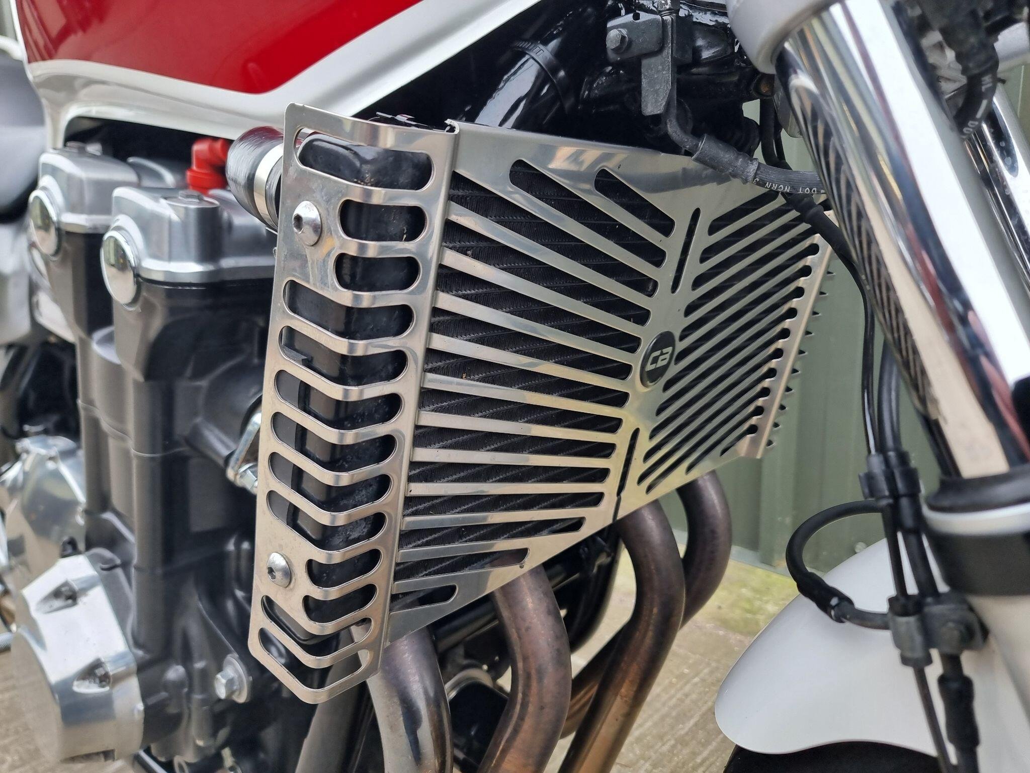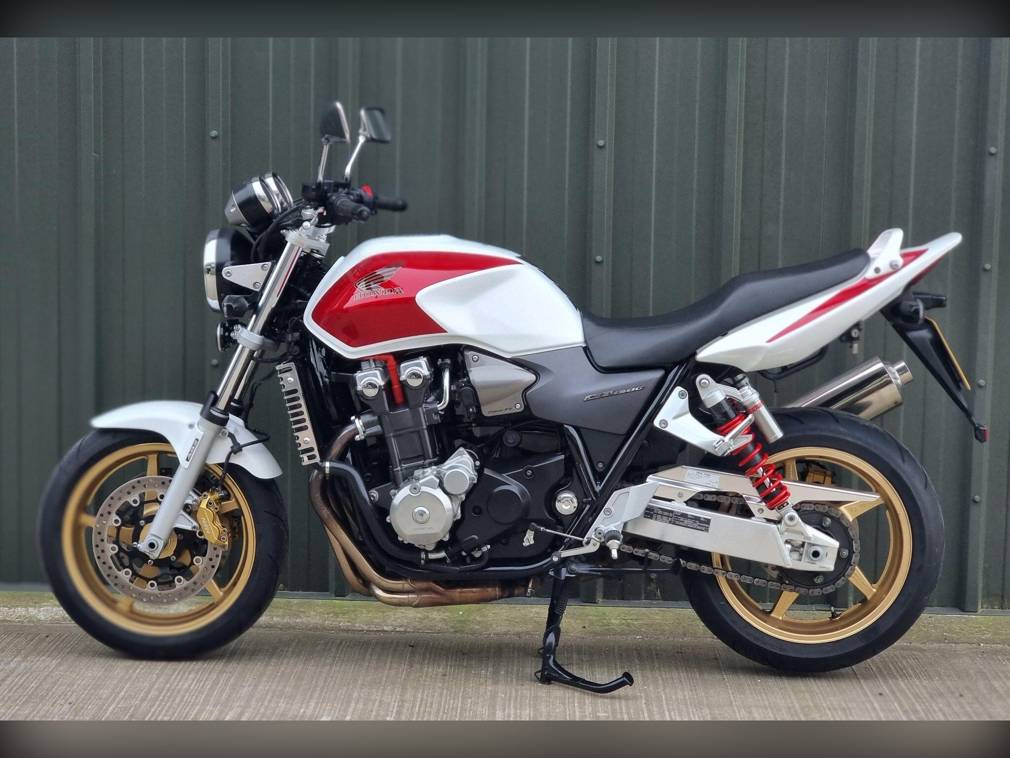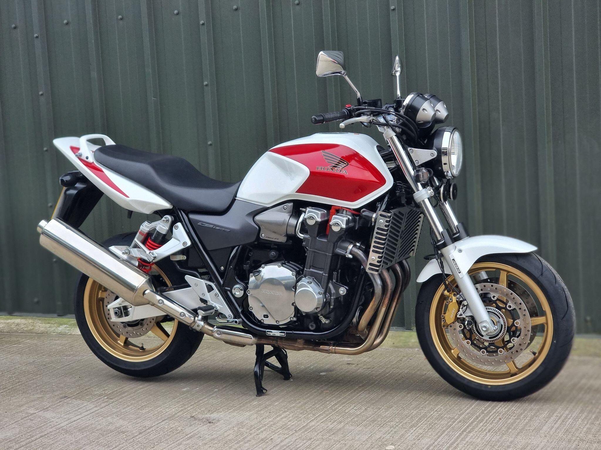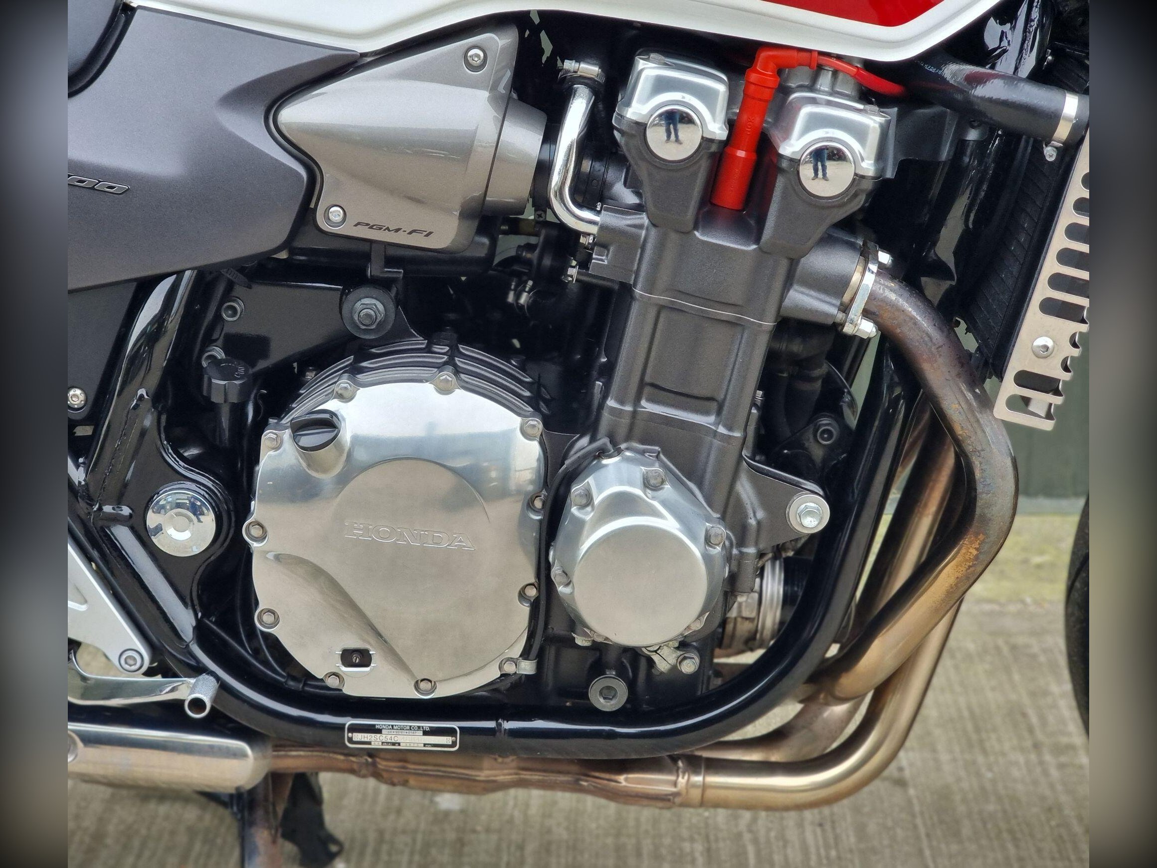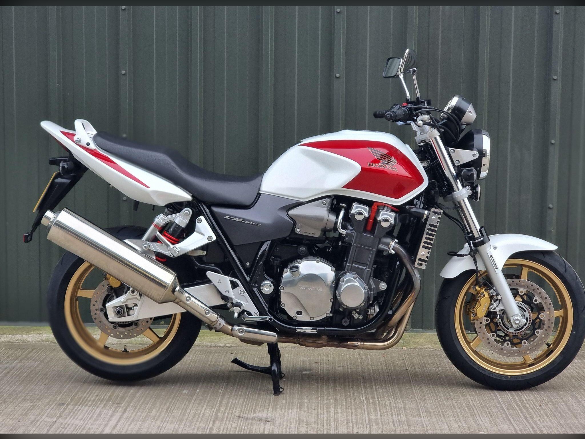 This Honda CB1300 SA. In Pearl White and Red is so Iconic. Not many around in this condition. Only 2 Owners, and 20 Service Stamps. With less than 11K miles, this bike is so well kept. It is always admired whenever I've taken it out for a ride. We have put new Dunlop tyres on which ride so well. This bike will be serviced (again) and have a brand new 12 month MOT when sold. We can discuss your part exchange, we can help with delivery. Give us a call if you have been looking for one of these bikes.
