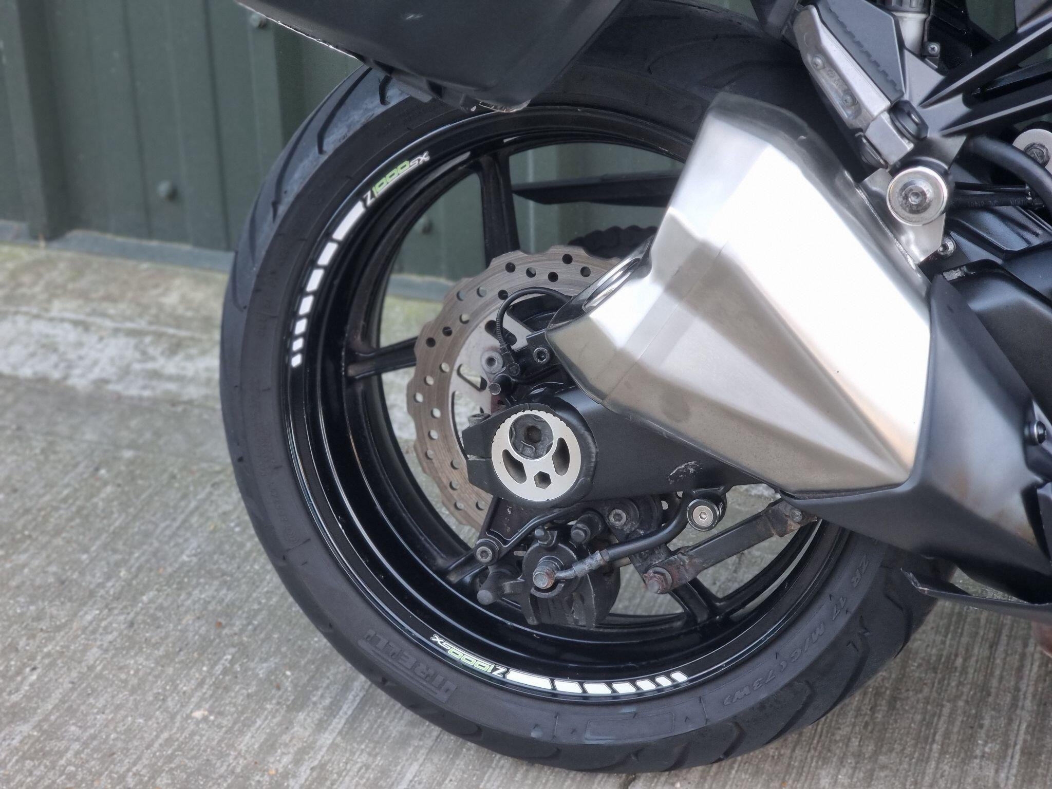 This Kawasaki Z1000SX in green and black looks like it's going fast standing still. We are going to carry out the major service on this bike, and issue a 12 month MOT . The panniers make this bike a real relevant Sports Tourer, but the great thing is, when it has no panniers on, it looks incredible. Call us to make an appointment to come and view this bike.