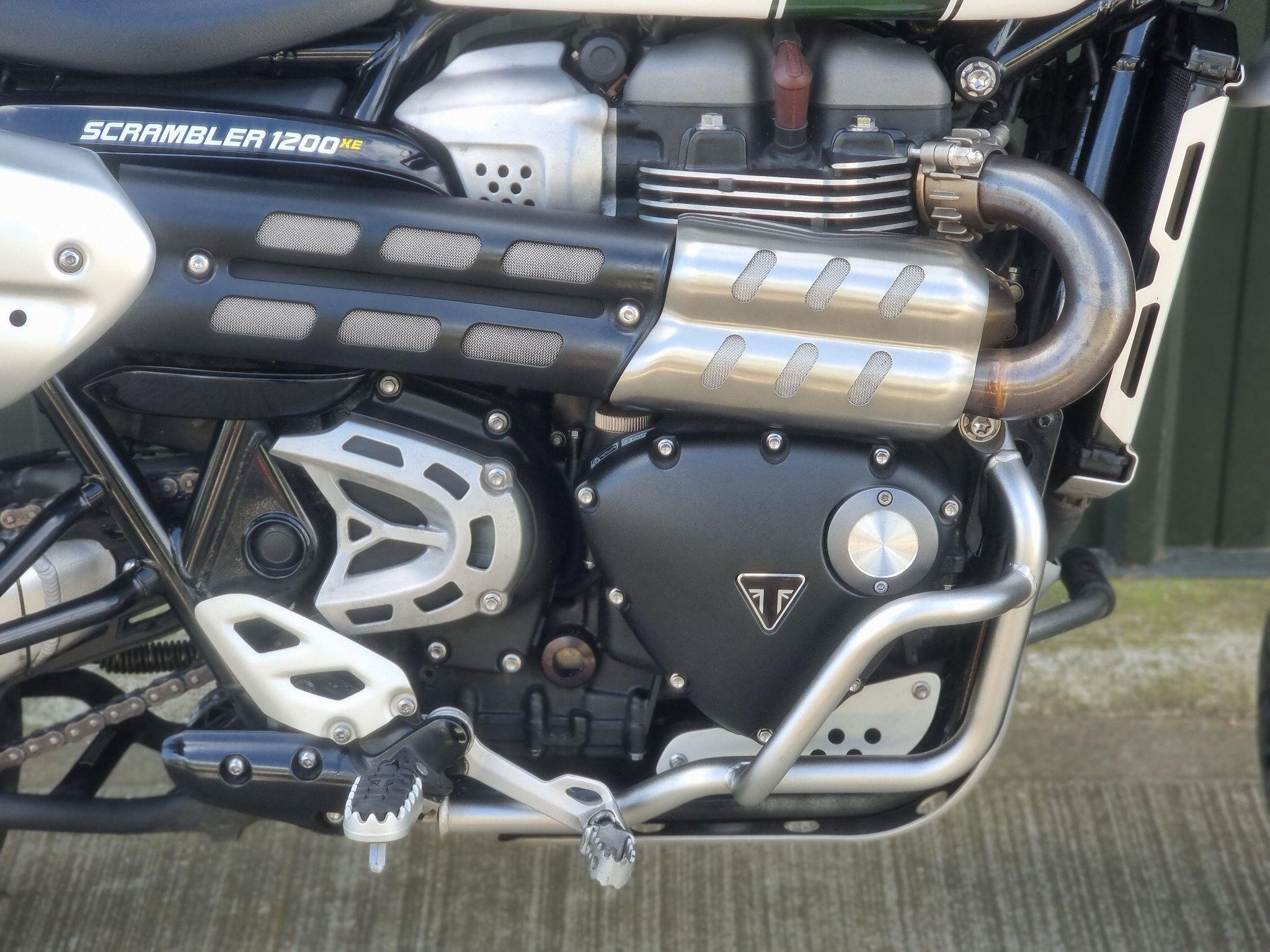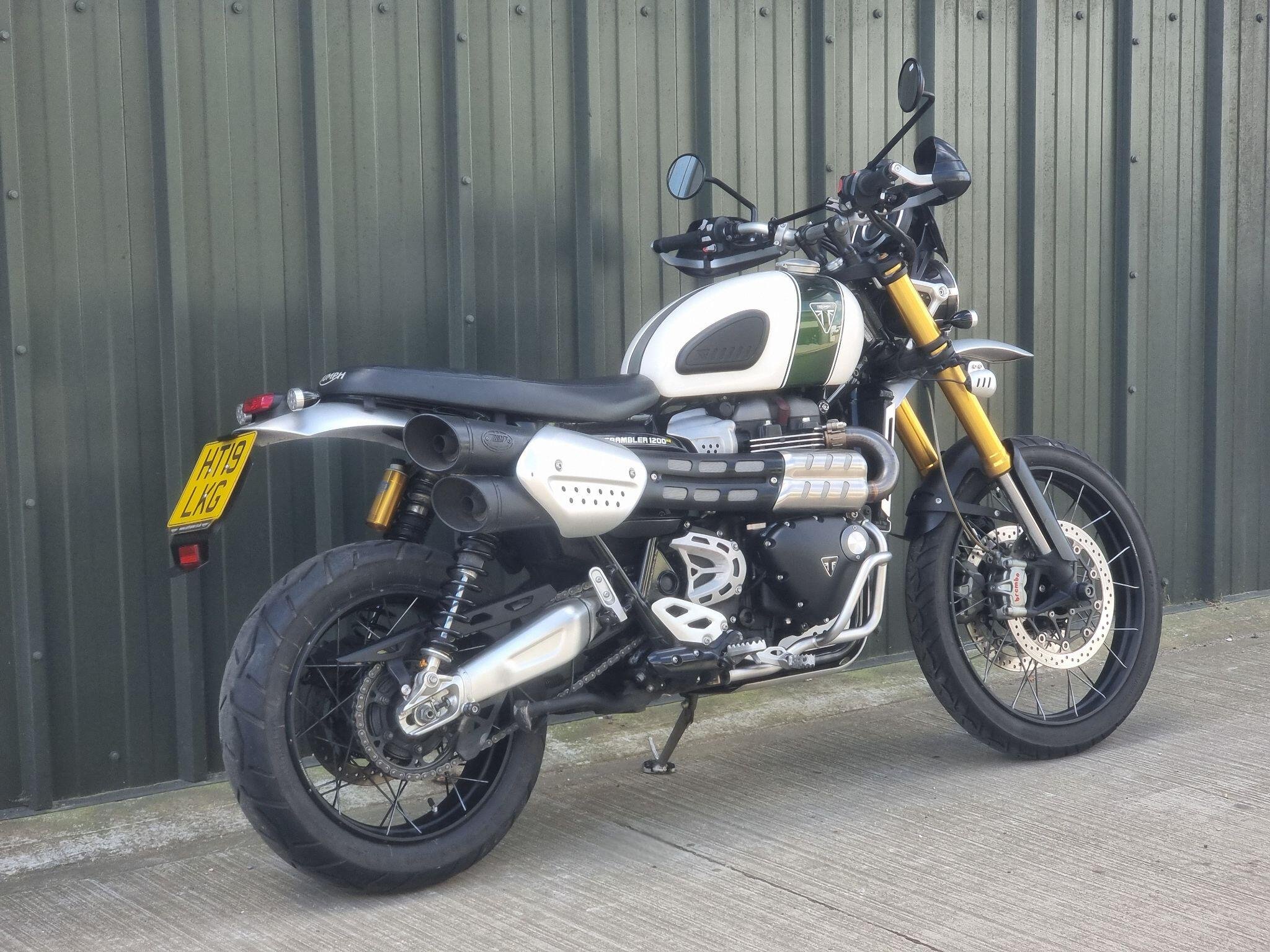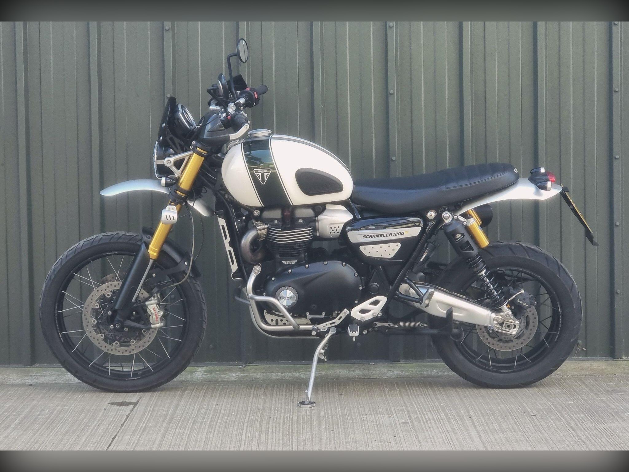 This Triumph Scrambler 1200XE in White is my favourite version. With Ohlins suspension and Brembo brakes you can begin to really realise what an absolute best seller this bike has been for Triumph. This bike will have 6 service stamps in the book, so has been really well maintained. The high level mudguard and spotlights add to the great look of this bike. Call us to make an appointment, we can discuss your part exchange, we can help with delivery.