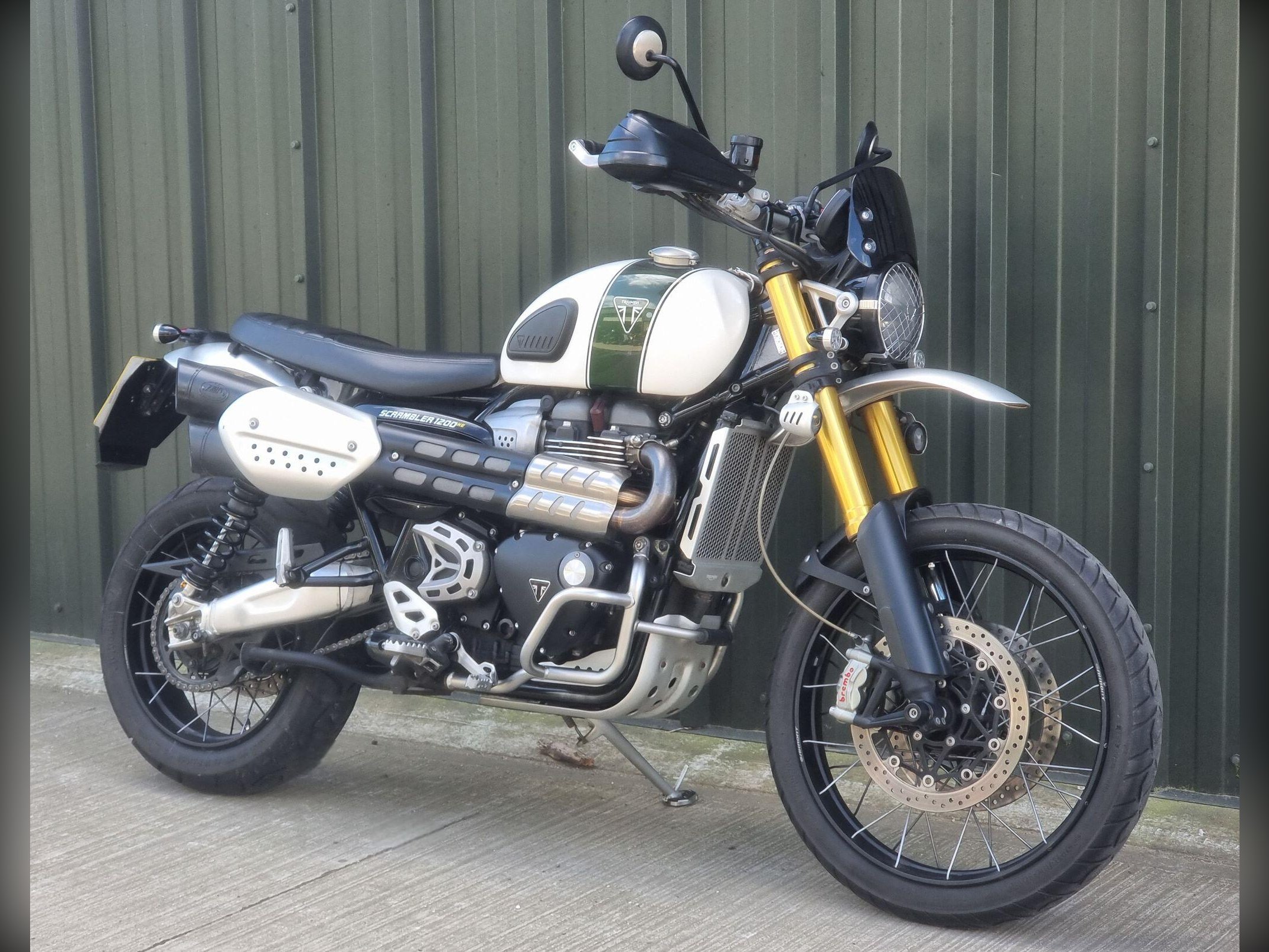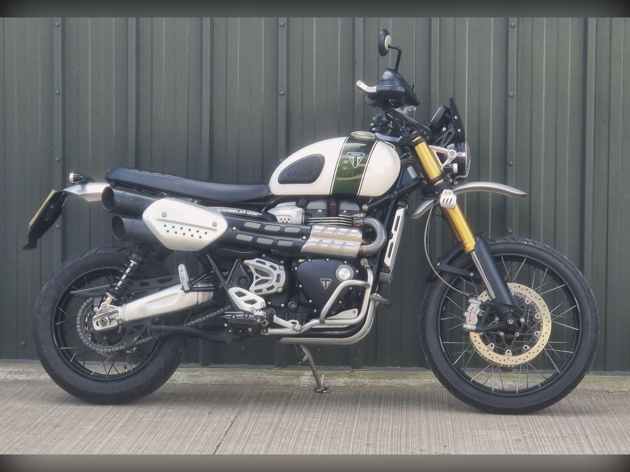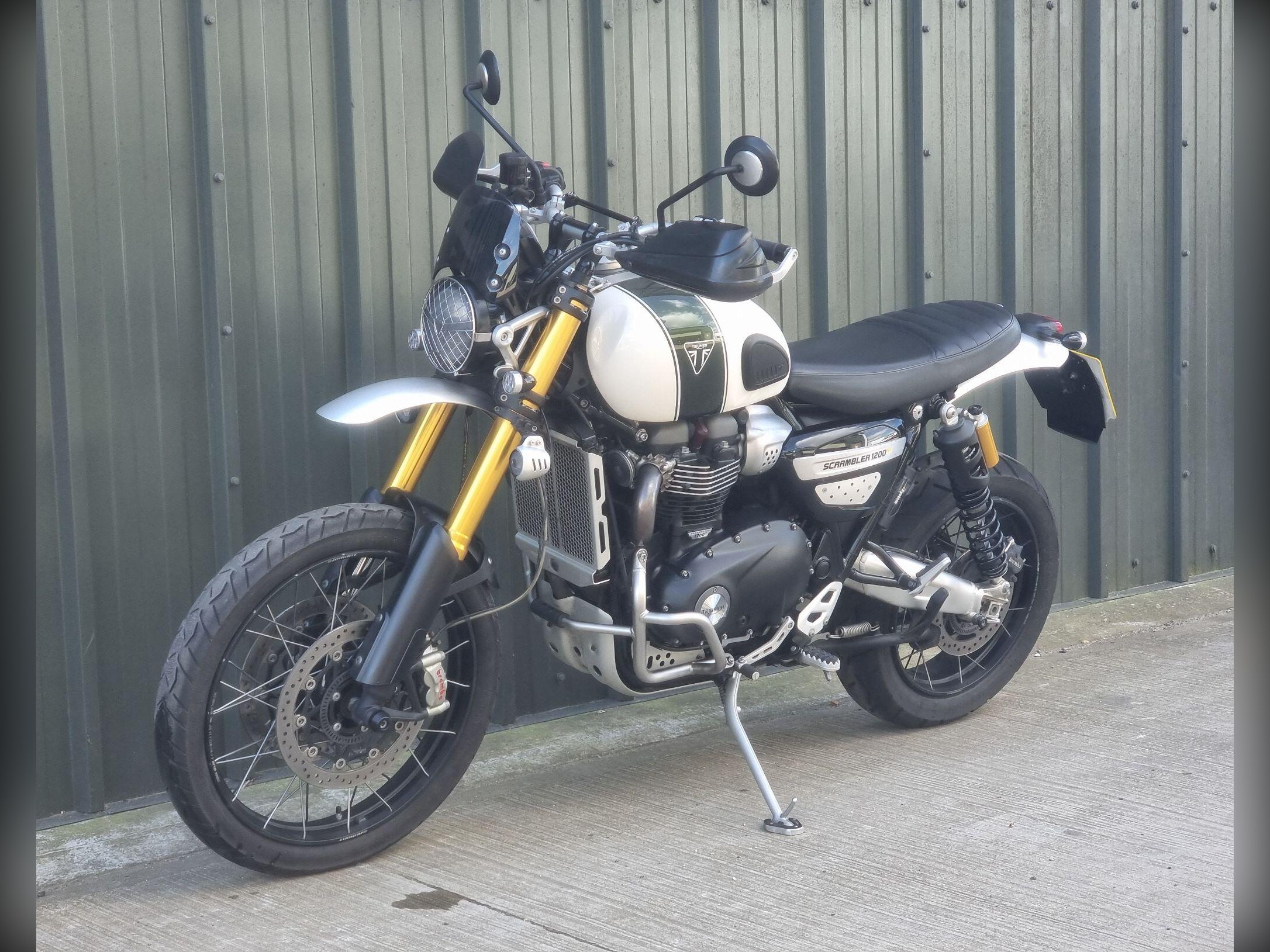 This Triumph Scrambler 1200XE in White is my favourite version. With Ohlins suspension and Brembo brakes you can begin to really realise what an absolute best seller this bike has been for Triumph. This bike will have 6 service stamps in the book, so has been really well maintained. The high level mudguard and spotlights add to the great look of this bike. Call us to make an appointment, we can discuss your part exchange, we can help with delivery.