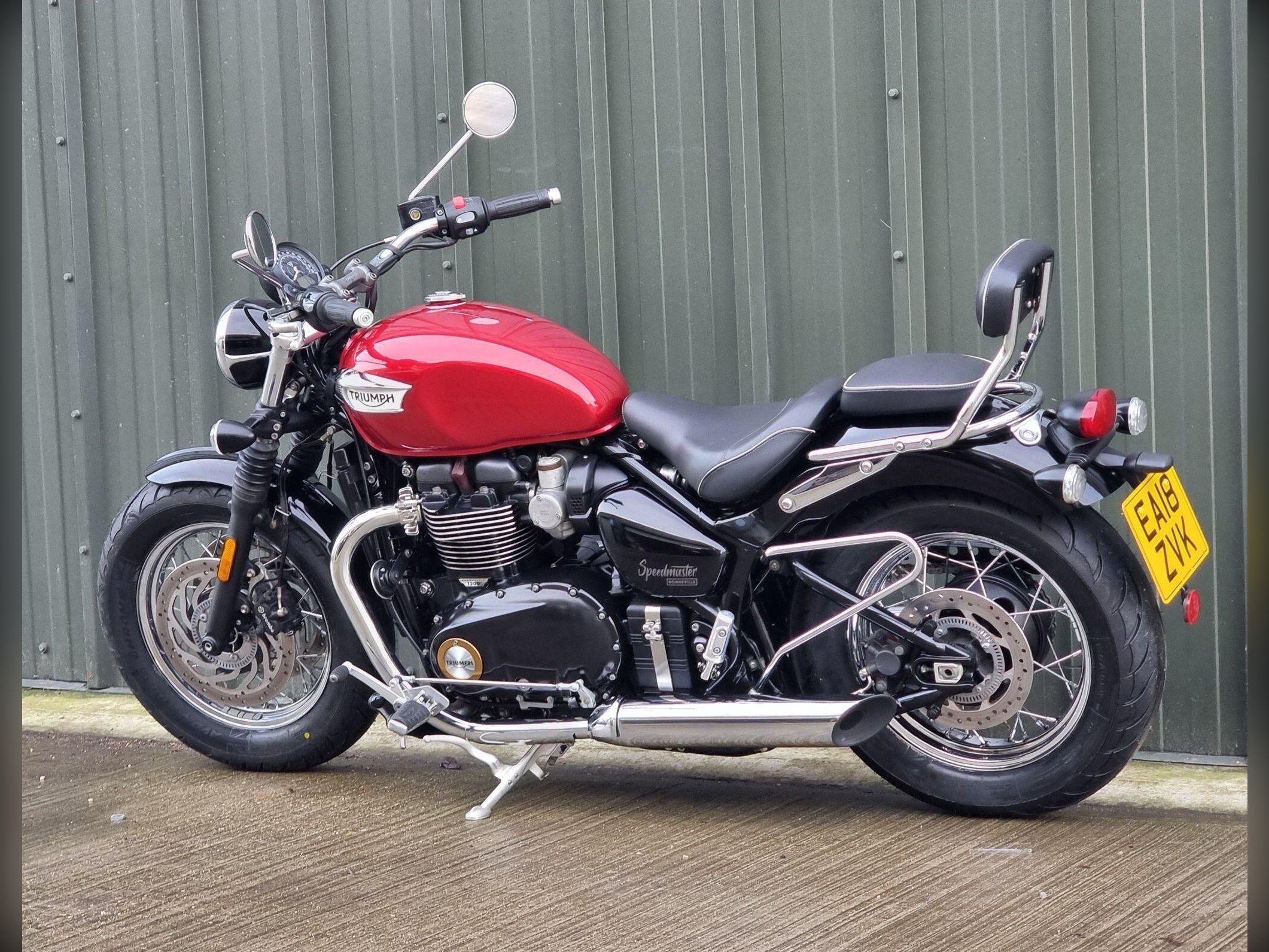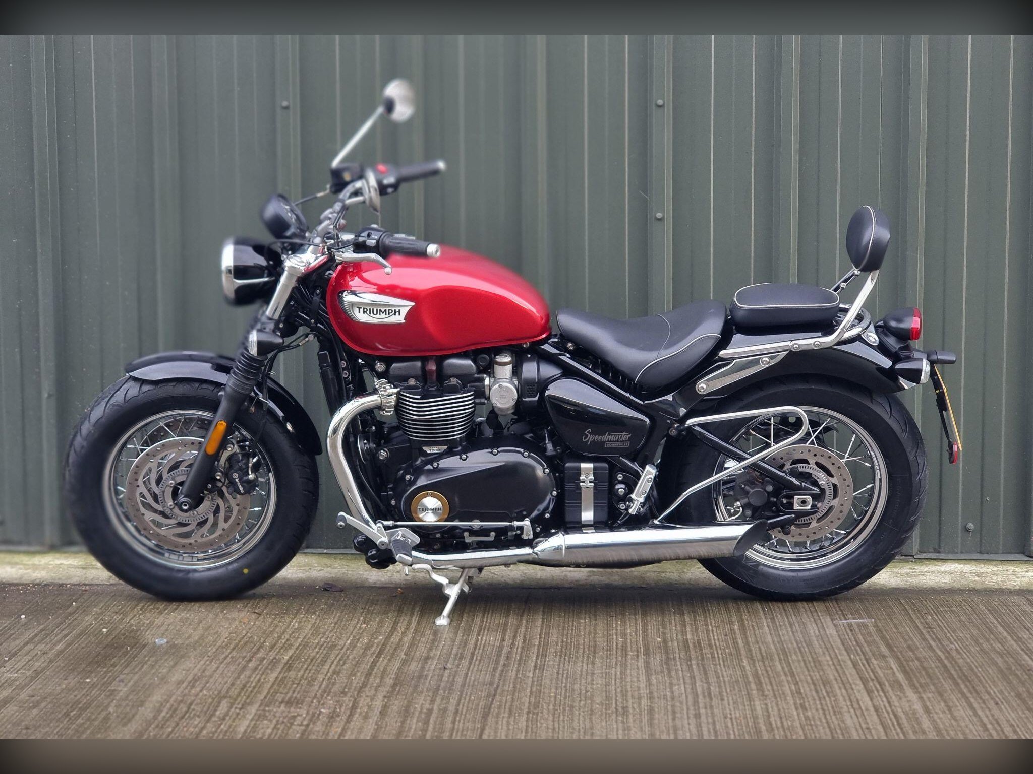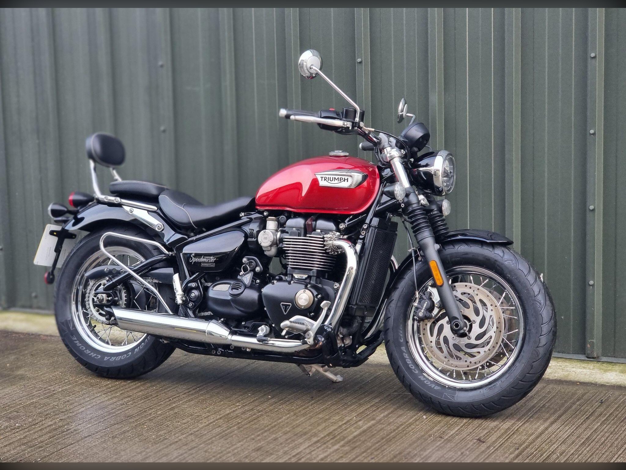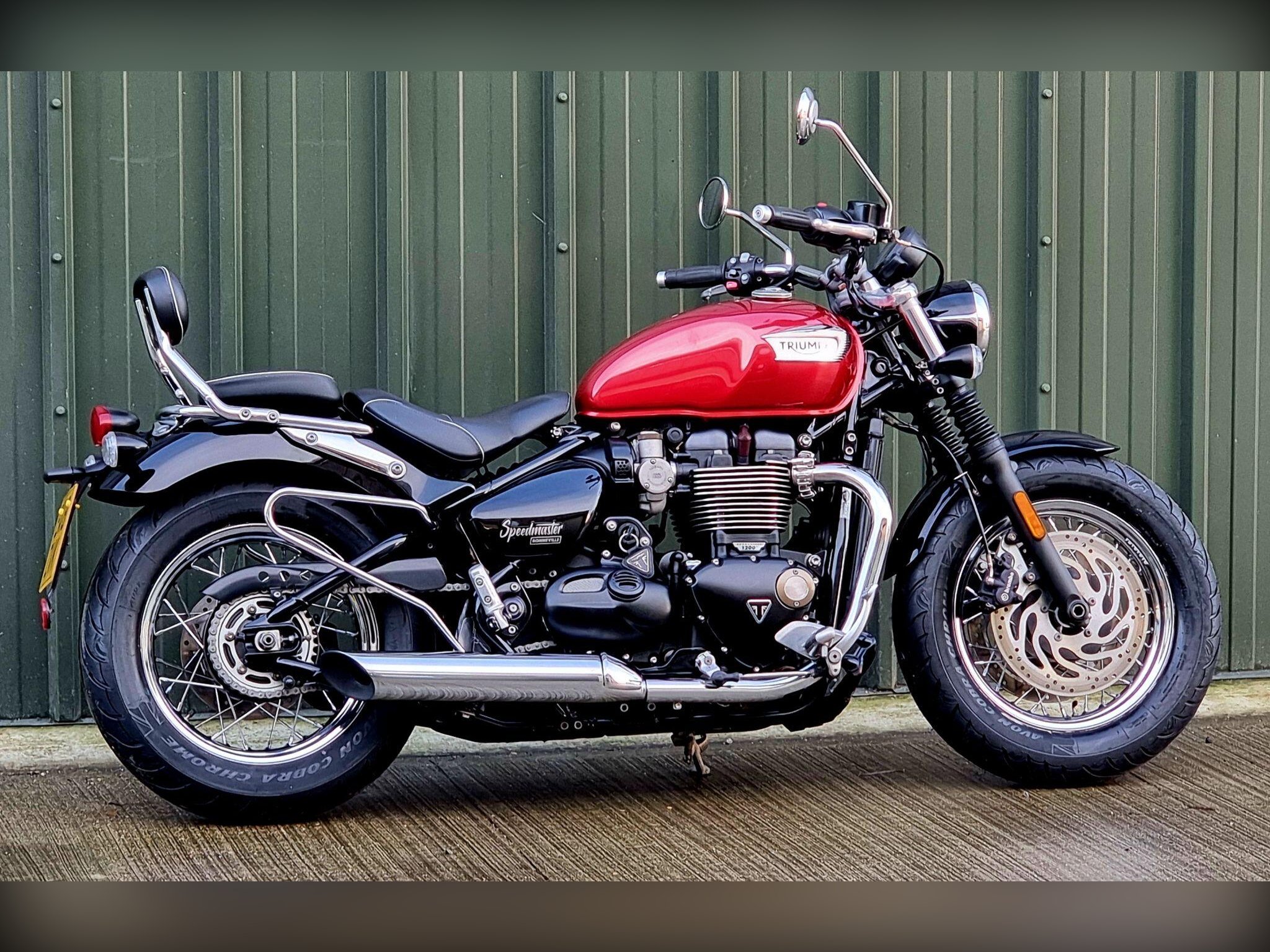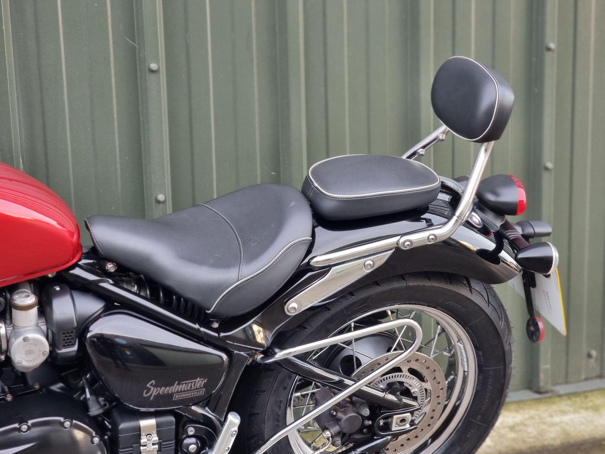 This Triumph Bonneville Speedmaster 1200 in Cardinal Red has been very well looked after by its original owner. This bike has only covered 2955 miles due to poor health. Triumph Solent have just carried out major service work including new Avon Cobra Chrome tyres, a new battery a service Inc brake fluid, new chain and sprockets. New MOT. Lots spent. So this is ready to ride off into the sunset, well after we cerakote the engine cases black, then this bike will look a million dollars.