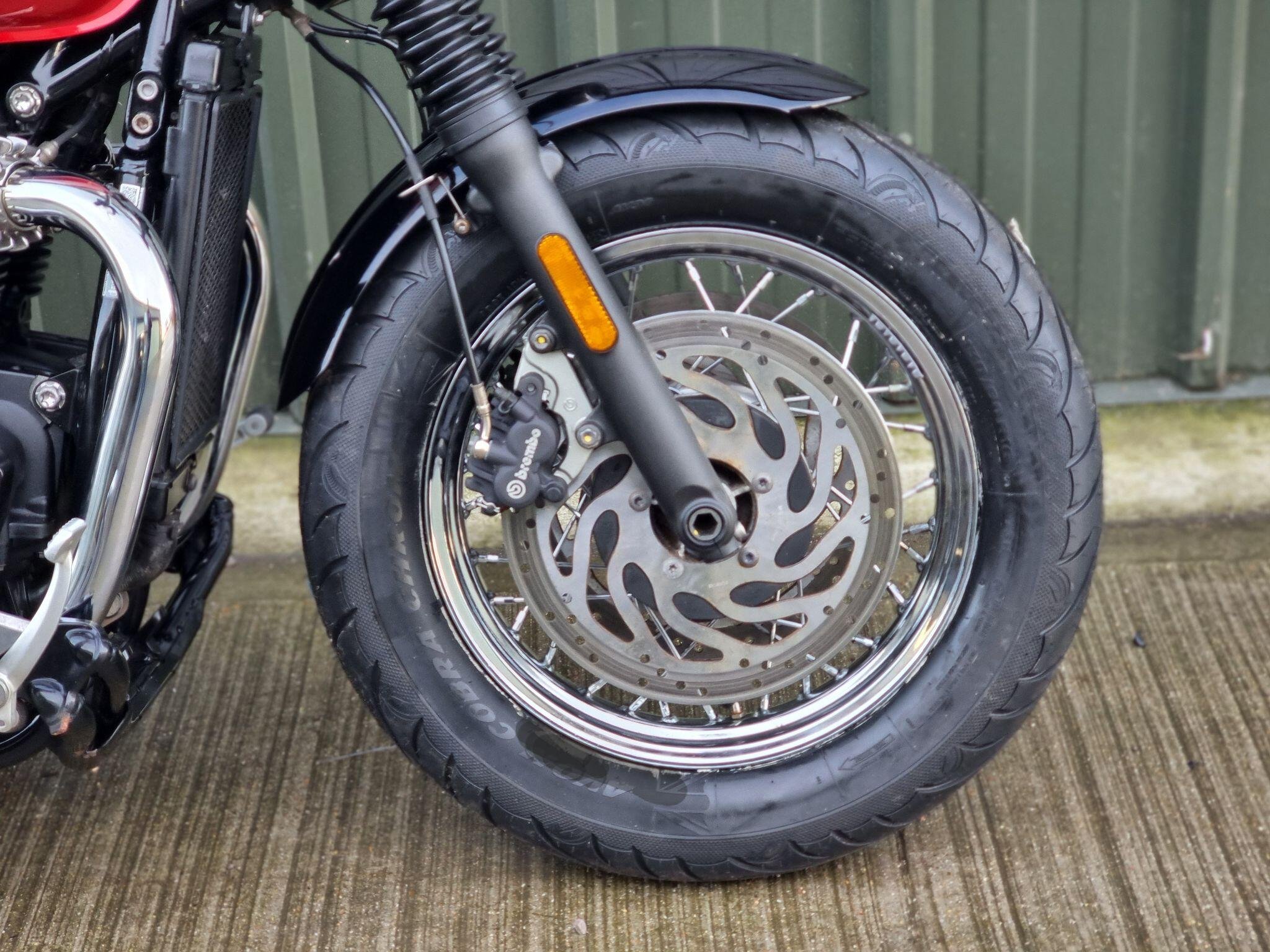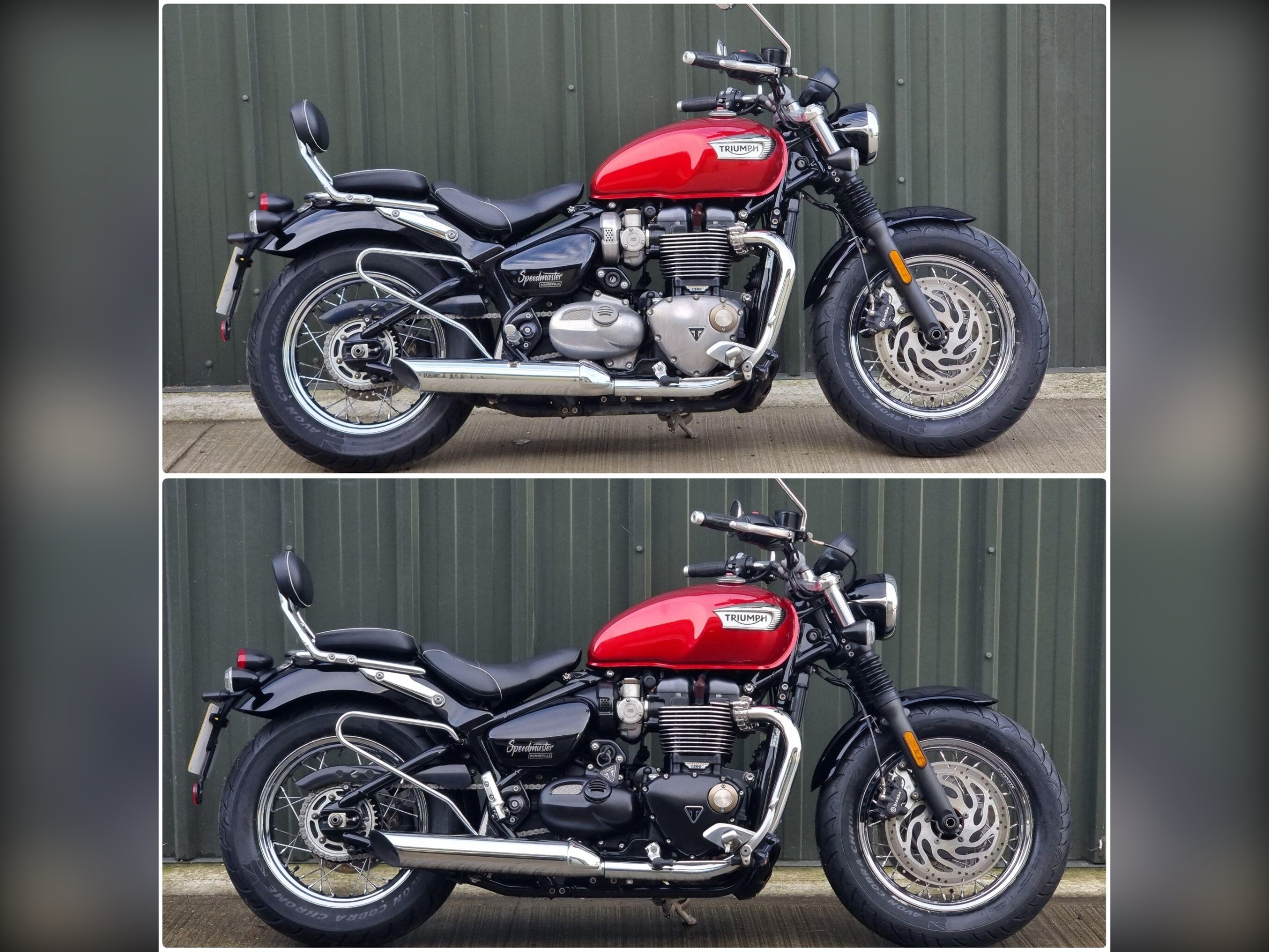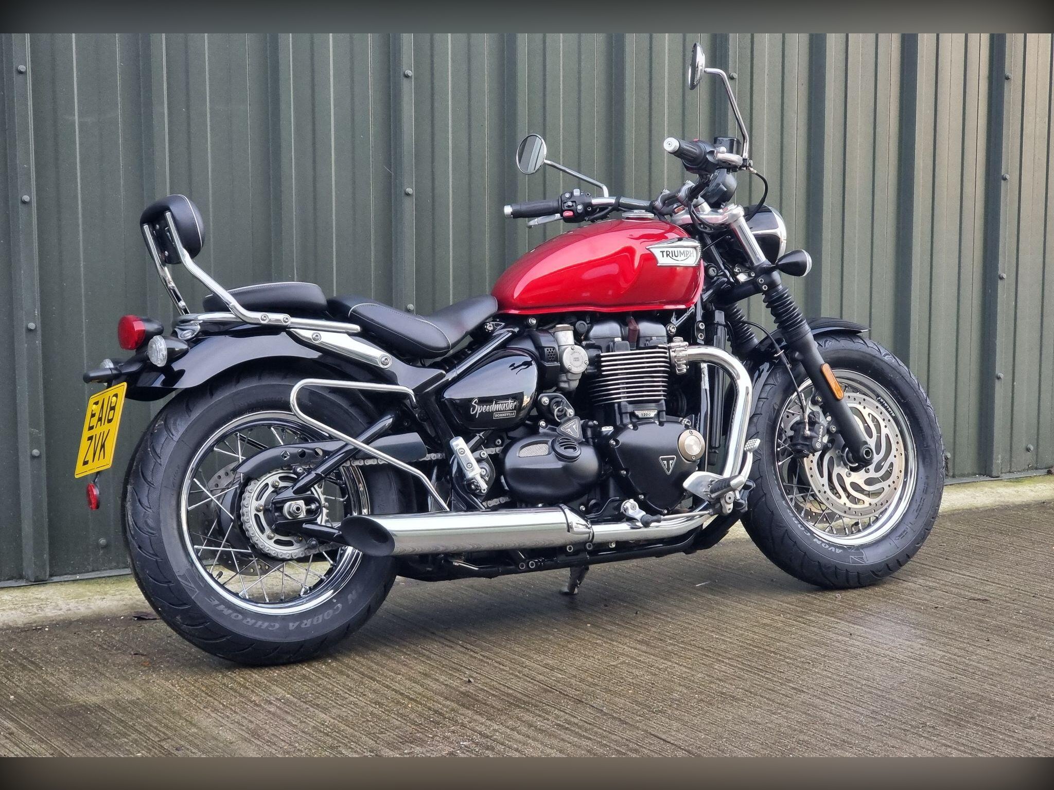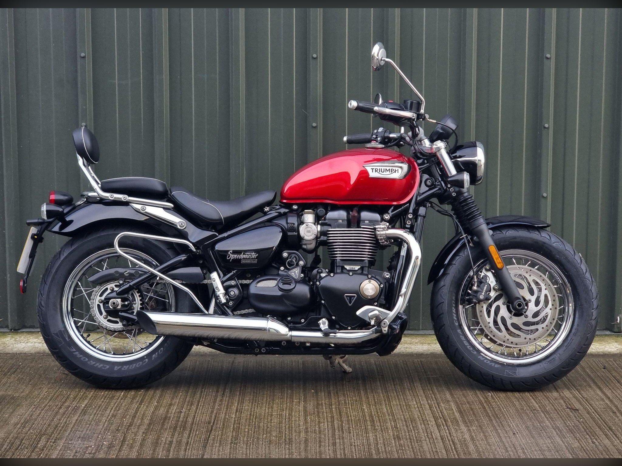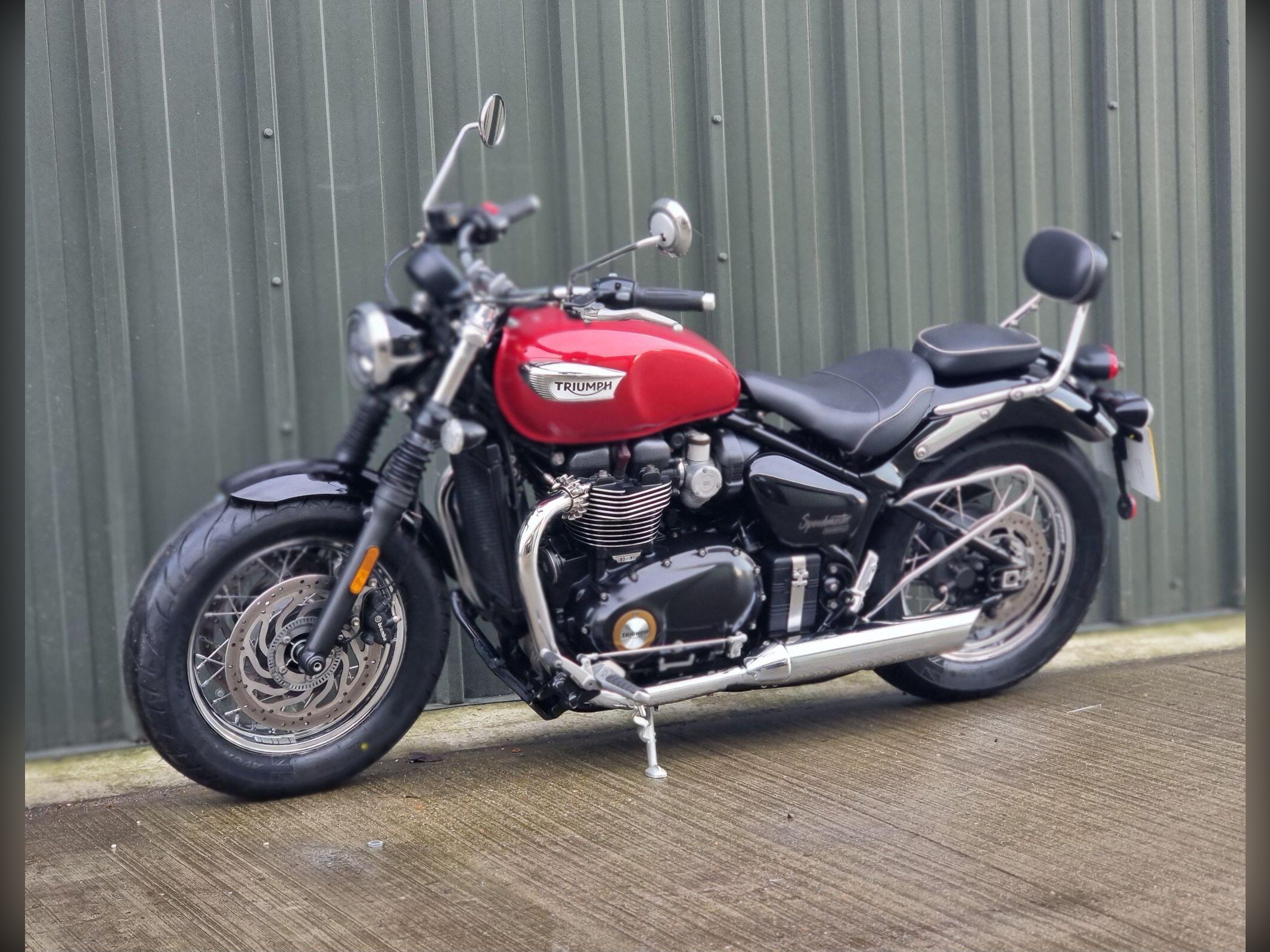 This Triumph Bonneville Speedmaster 1200 in Cardinal Red has been very well looked after by its original owner. This bike has only covered 2955 miles due to poor health. Triumph Solent have just carried out major service work including new Avon Cobra Chrome tyres, a new battery a service Inc brake fluid, new chain and sprockets. New MOT. Lots spent. So this is ready to ride off into the sunset, well after we cerakote the engine cases black, then this bike will look a million dollars.