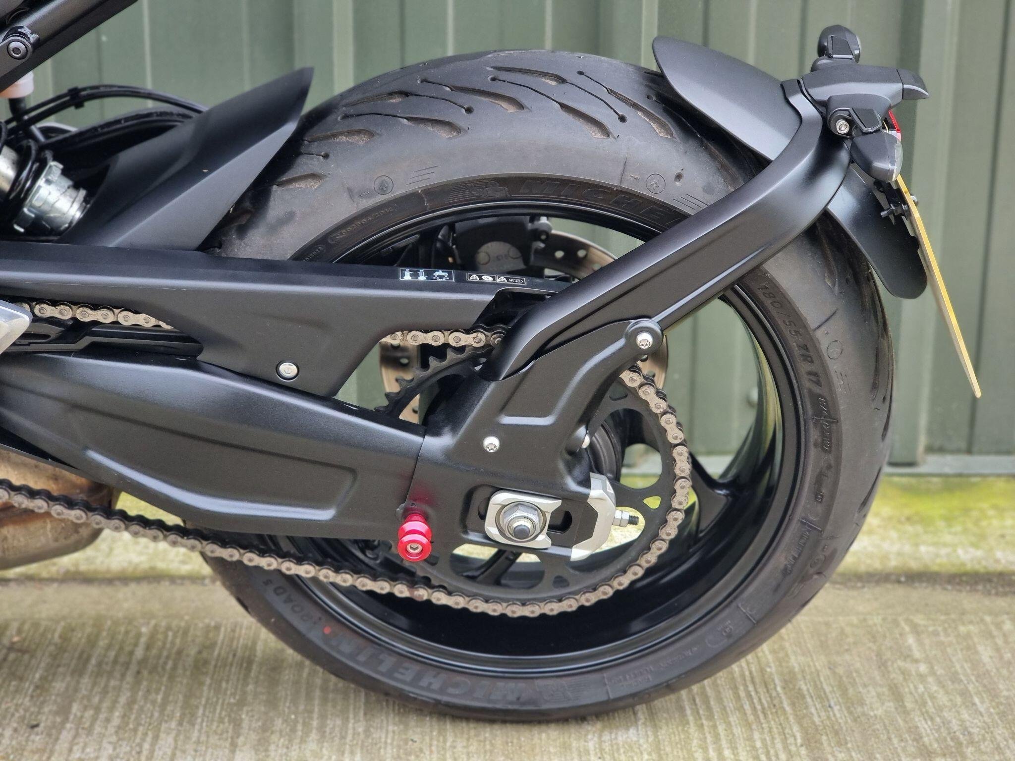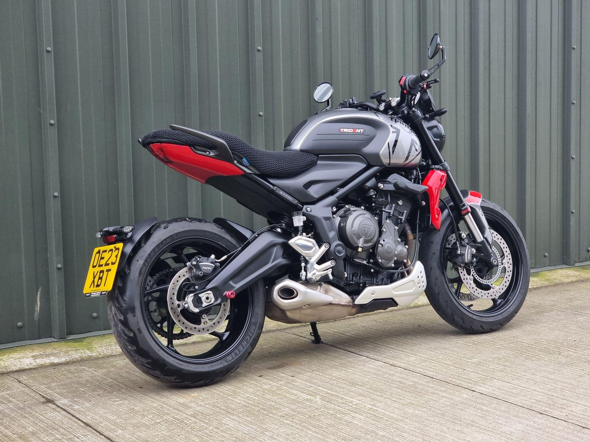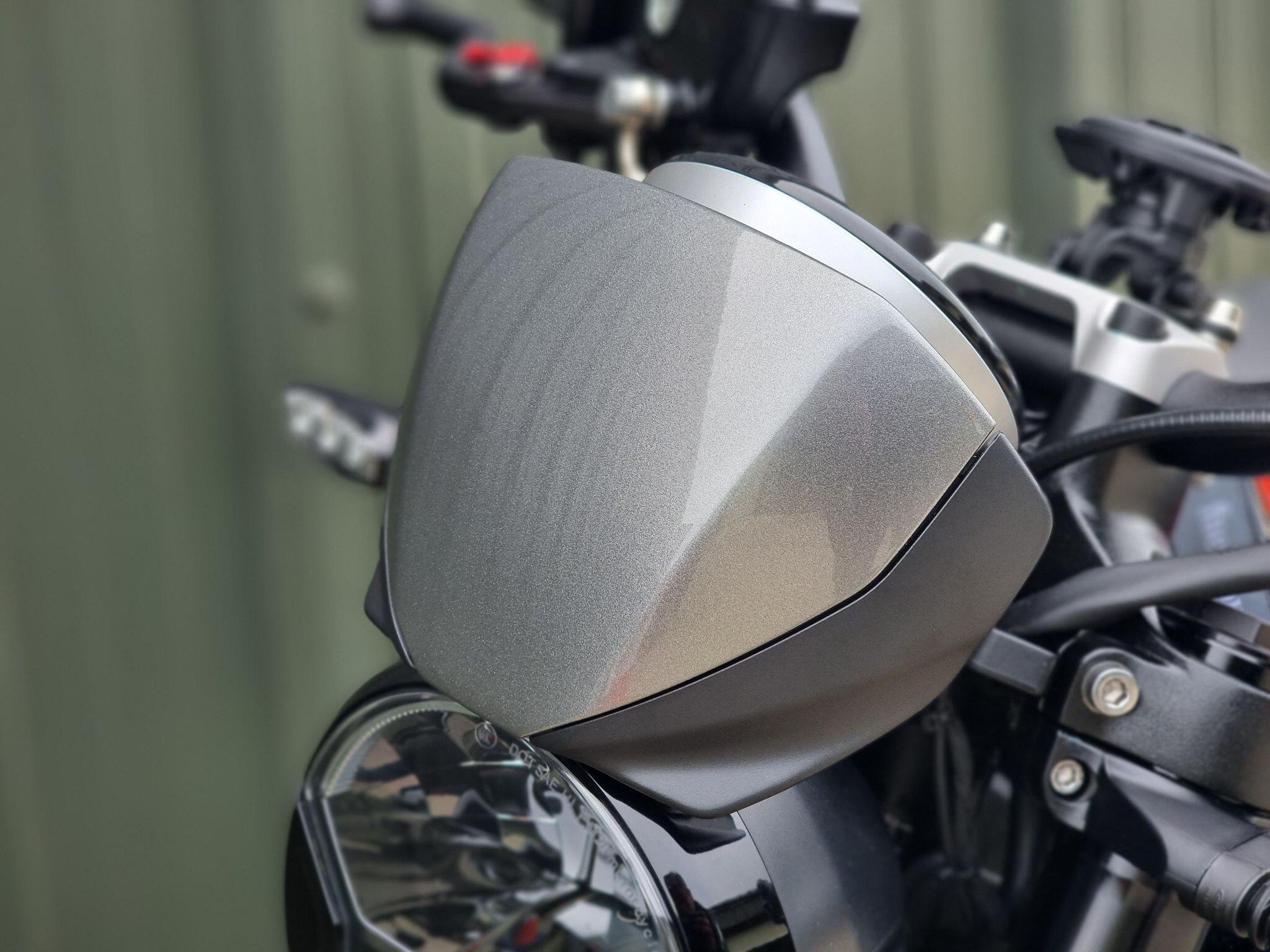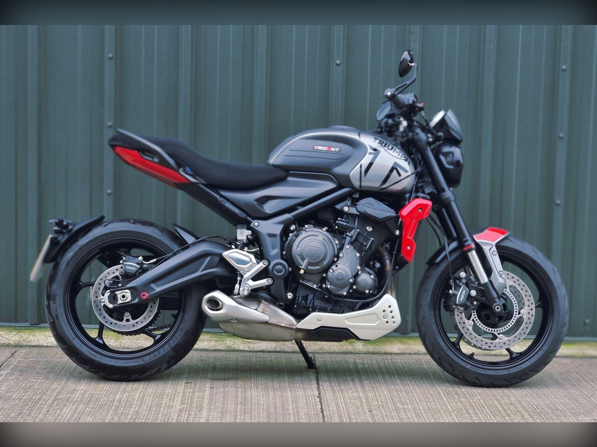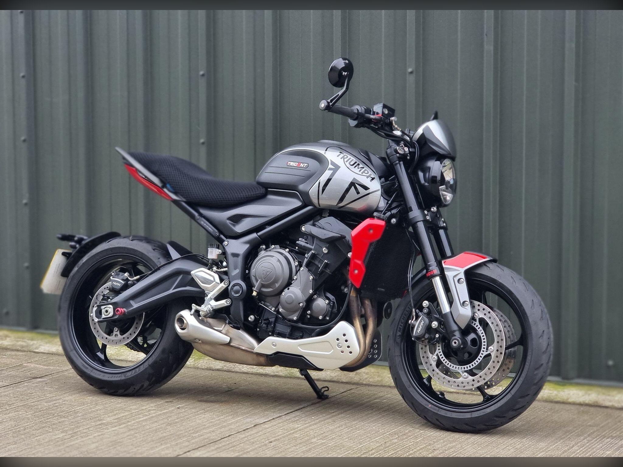 This Triumph Trident 660 in this colour looks great. The 660 triple engine is so good, that is why they use it in other models now. This one has only got 1550 miles, so treat yourself to that nearly new bike. This bike has some lovely additional extras. Contact us for a viewing