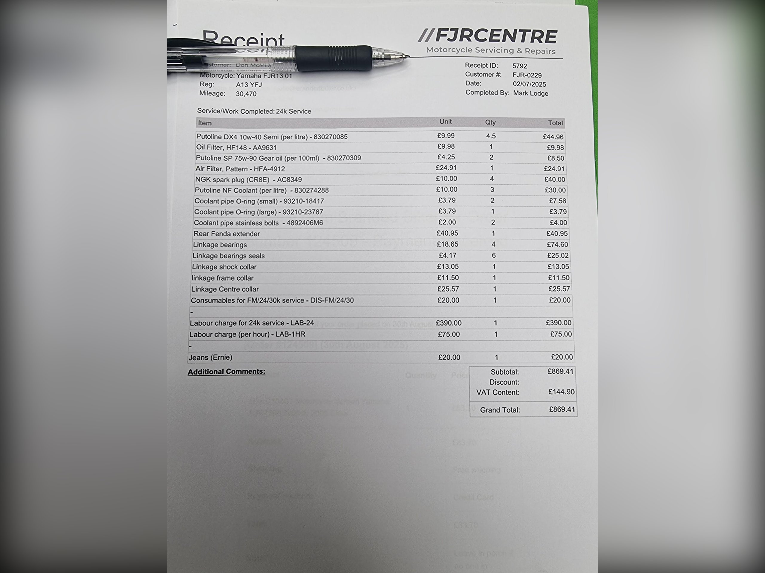 This bike has just recently had the large (24k) service completed at the FJR Centre in Bristol. All of the suspension linkages were upgraded.